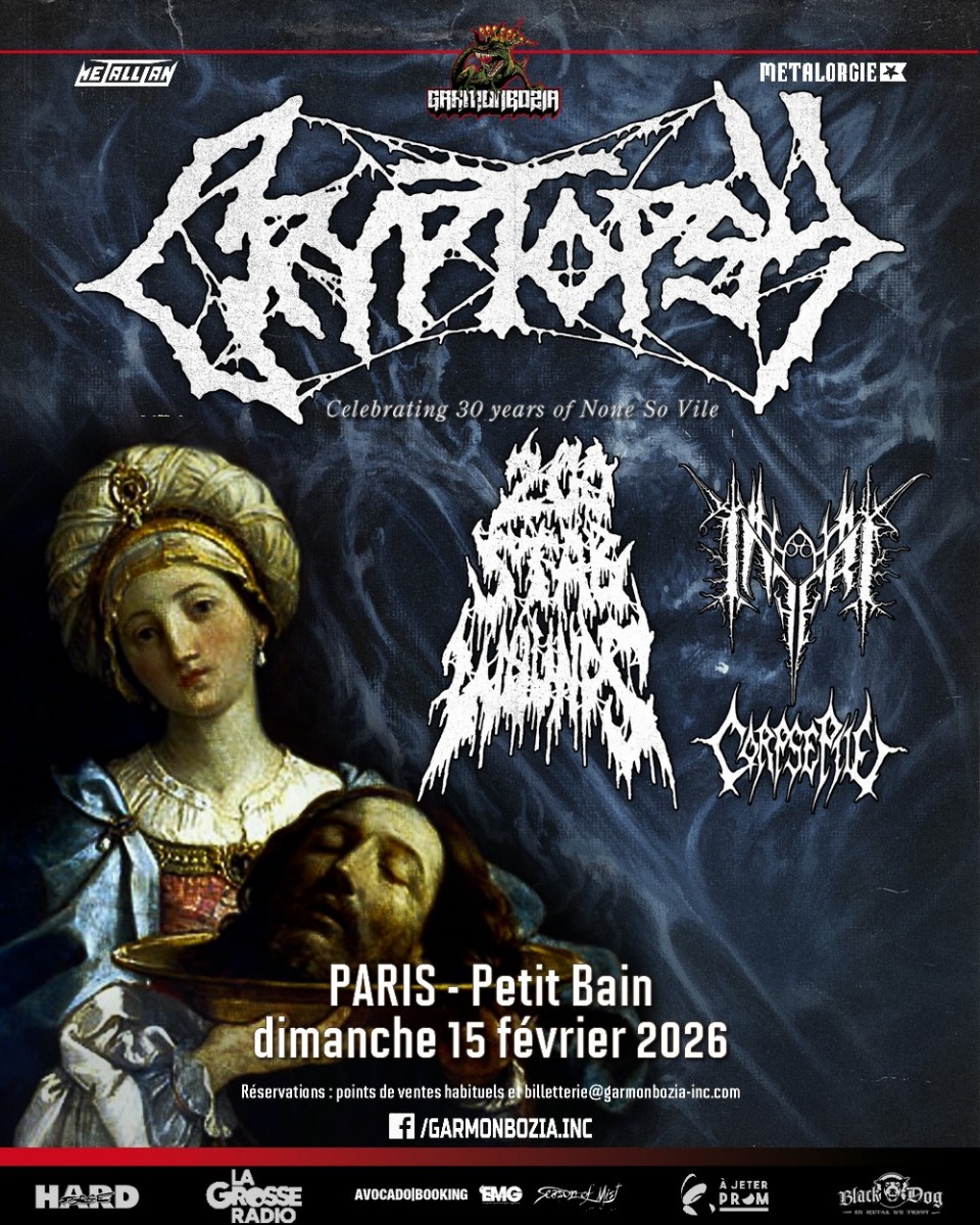 Au lendemain de la Saint Valentin, CRYPTOPSY vous invite à venir célébrer les 30 ans de leur cultissime album : NONE SO VILE ! Ce groupe légendaire de Montréal a passé plus de 30 ans à repousser les limites de la musique extrême, avec une discographie impressionnante et des performances live fulgurantes. Attendez-vous à une explosion de brutalité et de technicité.